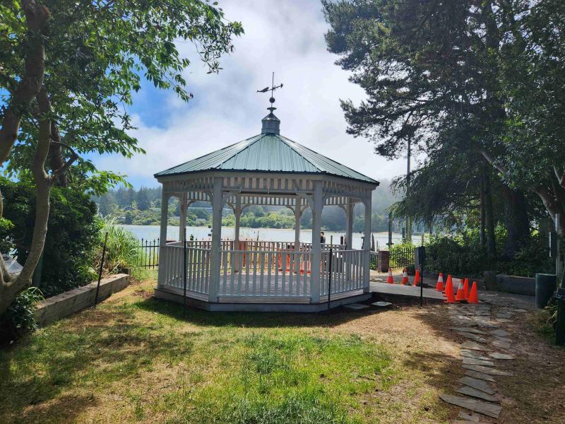 In 2025 the City will be replacing the gazebo at Old Town Park on Bay Street. The current gazebo has been in place since 1989 and has been part of many a holiday, wedding, and live music event at the park. The years of our harsh coastal environment and weather have taken a toll on the structure, including dry rot on structural members, rafters, and other items. With a generous donation from the Central Oregon Coast Board of Realtors, the City has ordered a replacement gazebo.