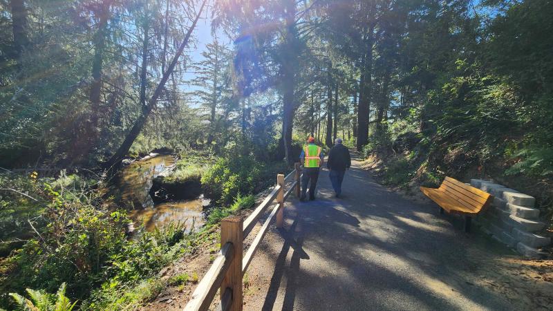 Public Works Director Mike Miller and Interum Public Works Director August Murphy conducted a final inspection of the Recreational Trails Program grant site for the Siuslaw Estuary Trail.